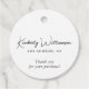 Elevate your packaging with this modern, minimalist personalized gift tag -- designed to make a lasting impression for small businesses and creative brands. Featuring a chic signature-style script, this design allows your name to double as a distinctive brand logo, creating a cohesive and professional look across your packaging. The front showcases your custom signature name, location, business type or other text, and “thank you” message, while the back is fully customizable with your website, contact details, or additional brand messaging. Perfect for clothing boutiques, handmade shops, beauty brands, event professionals, and online sellers, these round tags add a luxe finishing touch to every order. and reinforce your brand with every purchase.