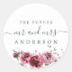Chic Script Future Mr Mrs Burgundy Floral Classic Round Sticker