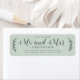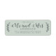 Chic, modern and simple wedding return address label with the text the future Mr and Mrs in off-black elegant script calligraphy on a pastel green background with a stylish touch of rustic foliage. Simply add your name and address. Exclusively designed for you by Happy Dolphin Studio. If you need any help or matching products please contact us through our store chat. We're happy to help you make your wedding the most beautiful day!