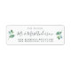 Chic, modern and simple wedding return address label with the text the future Mr and Mrs in off-black elegant script on a white background and a stylish touch of eucalyptus foliage. Simply add your name and address. Exclusively designed for you by Happy Dolphin Studio. If you need any help or matching products please contact us at happydolphinstudio@outlook.com. We're happy to help you make your wedding the most beautiful day!