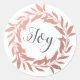 Chic Script Joy Rose Gold Wreath Christmas White Classic Round Sticker