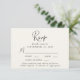 Chic light cream wedding RSVP card featuring "rsvp" in a modern script, simple typography, your personalised menu entree options and your names and wedding date joined together by a heart on the back.