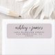 Chic, modern and simple wedding return address label with your names in off-black elegant hand written script calligraphy on a pastel purple background. Simply add your names and address. Exclusively designed for you by Happy Dolphin Studio. If you need any help or matching products, please contact us at happydolphinstudio@outlook.com. We're happy to help you make your wedding the most beautiful day!