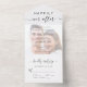 Modern wedding all in one invitation featuring your photo overlayed with your customised invitation and "Happily Ever After" written in a mix of simple typography and a chic script with swashes. A tear away RSVP postcard provides a convenient envelope-free response from your guests.