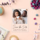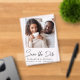 Chic clear acrylic wedding save the date announcement featuring your photo and "Save the Date" in a stylish script. Add your names, wedding date and location in modern typography.
