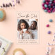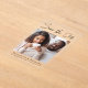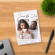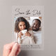 Clear acrylic wedding save the date announcement featuring your photo, "Save the Date" in a chic script, and your names, wedding date and location in simple, modern typography.