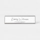 Professional and elegant white desk name plate featuring your name showcased in a chic signature script and your company or title in simple modern lettering.