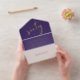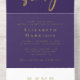 Elegant purple 60th birthday party all-in-one invitation with "sixty" in a large chic script, your name and "RSVP" in classic serif typography and the party details in simple lettering, all rendered in your choice of genuine gold, silver or rose gold foil. A white tear-away RSVP postcard provides a convenient envelope-free response option for your guests.