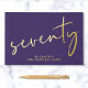 Elegant purple guestbook for her 70th birthday party featuring genuine gold foil, "seventy" in a chic script and her name in modern typography. Personalise the title on the spine and change the foil colour to silver or rose gold if desired.