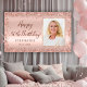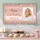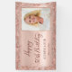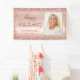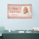 Elegant Modern Sparkle rose gold glitter metal Personalised Photo Happy 50th Birthday Party Banner. This Girly Adult feminine FIFTY (FIFTIETH) Birhday party decor featuring "Happy 50th Birthday" text in a stylish handwritten calligraphy script and custom name and your photo, date on blush pink or rose gold faux brushed metallic foil background with loose glam glitter frame around. Ideal for a feminine adult or girly milestone birthday celebration, this perfectly captures the essence of a modern rose gold or blush pink glitter sparkle girly birthday party. Perfect for a welcome banner or even a party decoration.