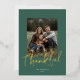 Chic Script Thanksgiving Photo Dark Green Gold Foil Holiday Card