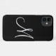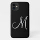 A simple, chic white script initial on black phone case. Modern and minimalist style.