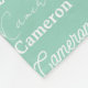 Chic seaside mint green name collage blanket decorated in nine different fonts spelling a custom name in white. Cute personalized gift with trendy typography.