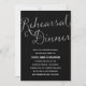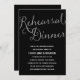 This elegant rehearsal dinner invite features gorgeous calligraphy, sparkly faux silver foil, and a chic black background.