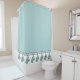 CHIC SHOWER CURTAIN_ STYLISH SEAFOAM TASSELS ON WHITE BOARDER. SEAFOAM BACKGFOUND ON TOP. SEE COLLECTIONS FOR COORDINATING ITEMS FOR HOME DECOR.