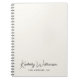 Chic light cream notebook with a minimalist vibe featuring your name or business brand showcased in a stylish signature script. Add additional text below in simple modern lettering.