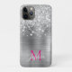Chic Silver Foil Faux Glitter Hot Pink Monogram Case-Mate iPhone Case