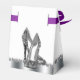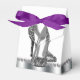 Beautiful black and silver glitter high heel shoe party favour boxes. These elegant black and silver glitter high heel shoe favour boxes can be customised with text and you can change the background colour and bow colour.
