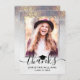 Send a chic custom photo graduation thank you card to your family and friends for their generous support. This modern design features your picture on the front with an overlay of black script typography that reads "Thanks" accented by a black grad cap with your name and year to personalise on a background of faux silver with gold sparkles and glitter. The back of the card has a 2nd photo with a thank you message and signature to customise. Congrats on your graduation! Designed by Susan Coffey.
