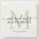 Chic Silver Monogram Script Name Wedding Date Stone Coaster