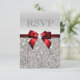 Chic Silver Sequins Diamond Red Bow Wedding RSVP Card