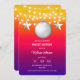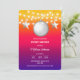 Elegant birthday invitation featuring silver hanging star, Christmas ball and string lights bulb on a multicolored paint gradient background.