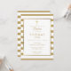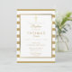 Chic gold and white striped baptism or christening invitation featuring an elegant faux gold foil border framing your details set in chic typography with a simple gold cross. Designed by Thisisnotme©