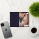 This is a chic and classy wedding save the date postcard using an elegant and modern font in gold foil along with a single minimalistic photo with a gold frame border, also using real gold foil. This design applies a filter to your photo for a slight vintage feel. You can remove this filter by clicking on the blue button and selecting the filters to edit.