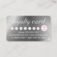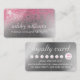 Glam loyalty business cards for makeup and hair stylists salon with pink glitter and white sparkle accents and a black grey holographic background.