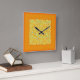 A chic Square Wall Clock, with a mix'n'match pattern of golden daffodils and coordinating polka dots, from a handpainted watercolour design by Judy Adamson.