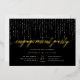 Our elegant engagement party invitations in chic black and white feature a rich black background with strings of white lights across the top, and "engagement party" in chic gold foil calligraphy script typography. Personalise with your engagement celebration details beneath in white lettering.