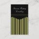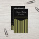 Elegant Chic Stripes Business Card design in black and olive green featuring a striped background and scallop border. This stylish yet professional double-sided business card would make a great first impression to potential clients. Customise with the details of your business by filling out the text fields on the product page or click on the "Customise It" button to find additional personalisation options.