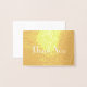 There are so many different font styles to try if you want to create your own thank you card with a cool metallic foil effect. Parisian is very stylish and modern looking. A pretty solid gold background with text on top.