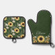Chic Sunflower Floral Pattern Custom Script Name Oven Mitt & Pot Holder Set