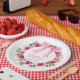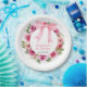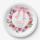 Sweet girl's birthday party paper plate features a watercolor rose flower wreath with a big pink bow.