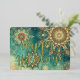 Chic Teal Blue Abstract Snowflake Floral Art Gold Foil Holiday Card