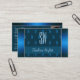 Chic Teal Blue with Photo and Monogram Pattern Business Card