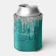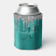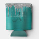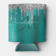 Chic Teal Brushed Metal Silver Glitter Drips Name Can Cooler
