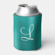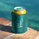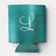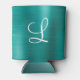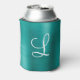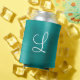Chic Teal Brushed Metal White Monogram Can Cooler