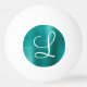 Chic Teal Brushed Metal White Monogram Ping Pong Ball