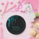 Chic Teal Glitter Drips Sweet 16 Birthday Paper Plate