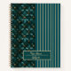 Teal Green Gold Glitter notebook with pattern lines. The notebook can be customised with your choice of font and font colour. The notebook features a hand-lettered typeface that is perfect for a journal or notebook. On-trend girly design can be customised by clicking on the "Personalise" button.