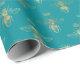 Chic Teal Gold Queen Bee Pattern Wrapping Paper