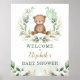 Chic Teddy Bear Greenery Gold Wreath Welcome Baby Poster