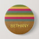 Chic Textured Stripes Customisable Button. This design features textured stripes on a distressed brown paper background. This grungy yet vibrantly coloured button may be customised with a name or other personalised text. Add a little style and flair to your jacket or bag!
