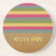 Chic Textured Stripes Customisable Coaster. This design features textured stripes on a distressed brown paper background. This grungy yet vibrantly coloured coaster may be customised with a name or other personalised text. Never be unsure whose drink is whose again!
