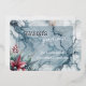 Chic Trendy Red Floral Berries On Teal Blue Marble Foil Holiday Card