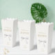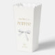 Delight wedding guests with a surprise midnight snack. This lovely wedding favour popcorn box features couple monogram and text in an imitation gold font against a lovely off white background as well as a pretty dusty white watercolor ribbon illustration.