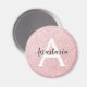 Chic and glam blush pink rose gold glitter sparkles metallic magnet, with a large, white monogram initial and your custom name in an elegant grey script font. Personalise this trendy magnet with your name or monogram initial. You can change the text colour and font style and size using the customise option.