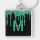 Chic Turquoise Dripping Glitter Monogram Name Key Ring